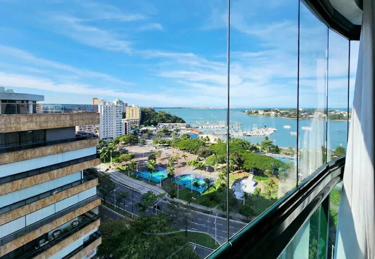 Está localizado na Praia do Canto, em frente à Praça dos Namorados, e fica a poucos minutos do centro comercial de Vitória e a poucos passos do Triângulo das Bermudas, um dos principais complexos de lazer da Praia do Canto com bares, restaurantes, discotecas, lojas e diversas opções de entretenimento.