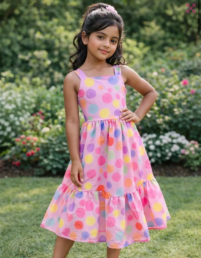 VESTIDO ROSA BOLINHAS DE ALGODÃO