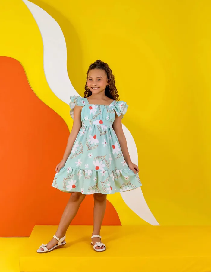 VESTIDO NINA FLORIDO VERDE