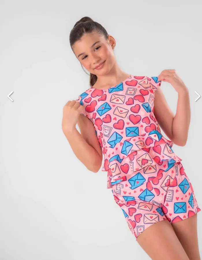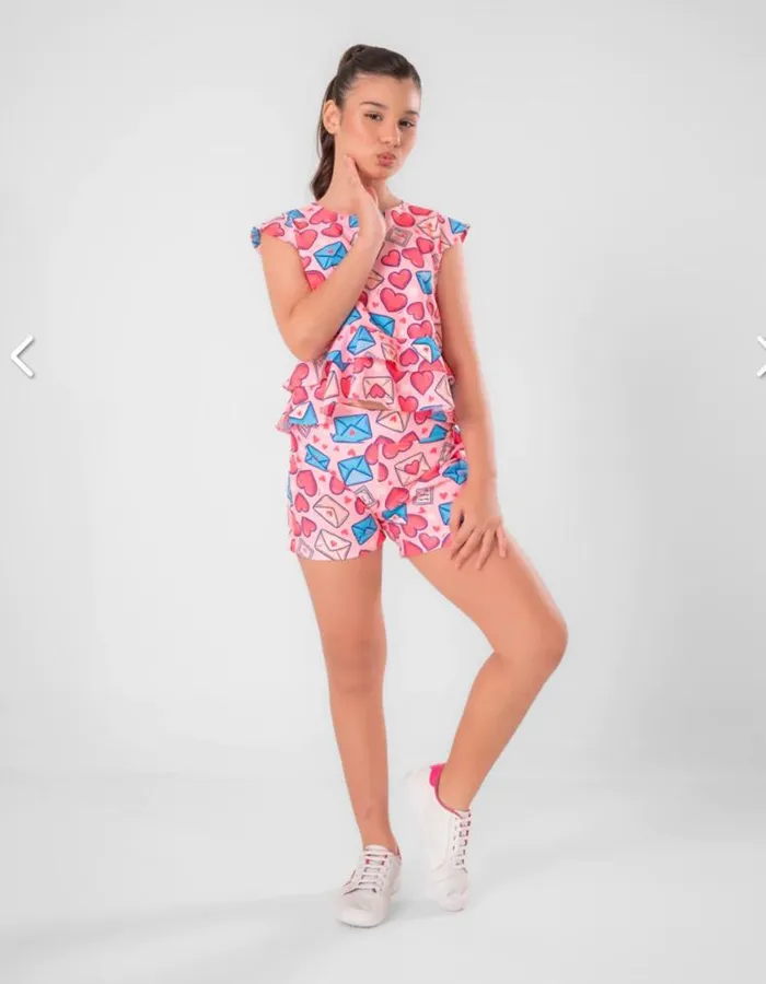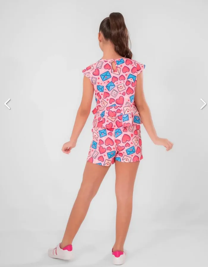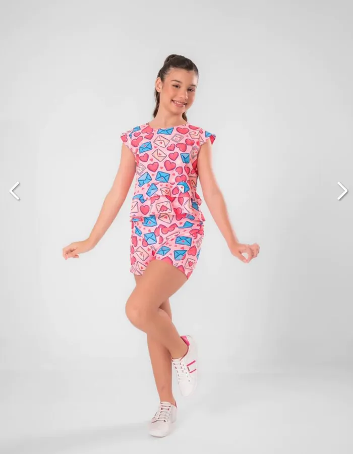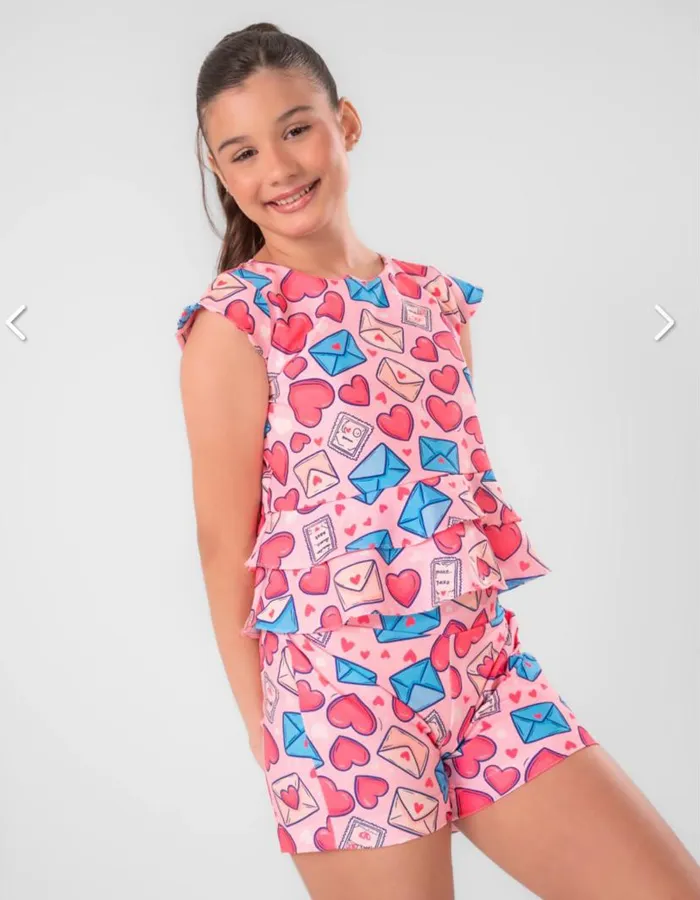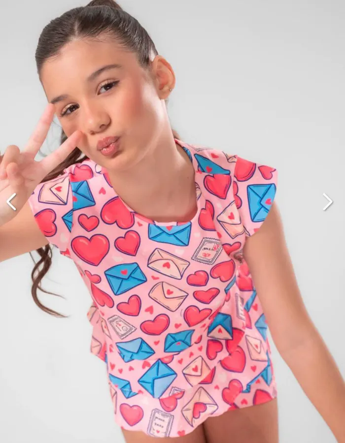 Delicado, alegre e cheio de charme, esse conjunto infantil é perfeito para deixar as pequenas ainda mais estilosas e confortáveis. Com uma estampa encantadora de cartinhas e corações, a peça transmite leveza, diversão e um toque super fofo para o look.