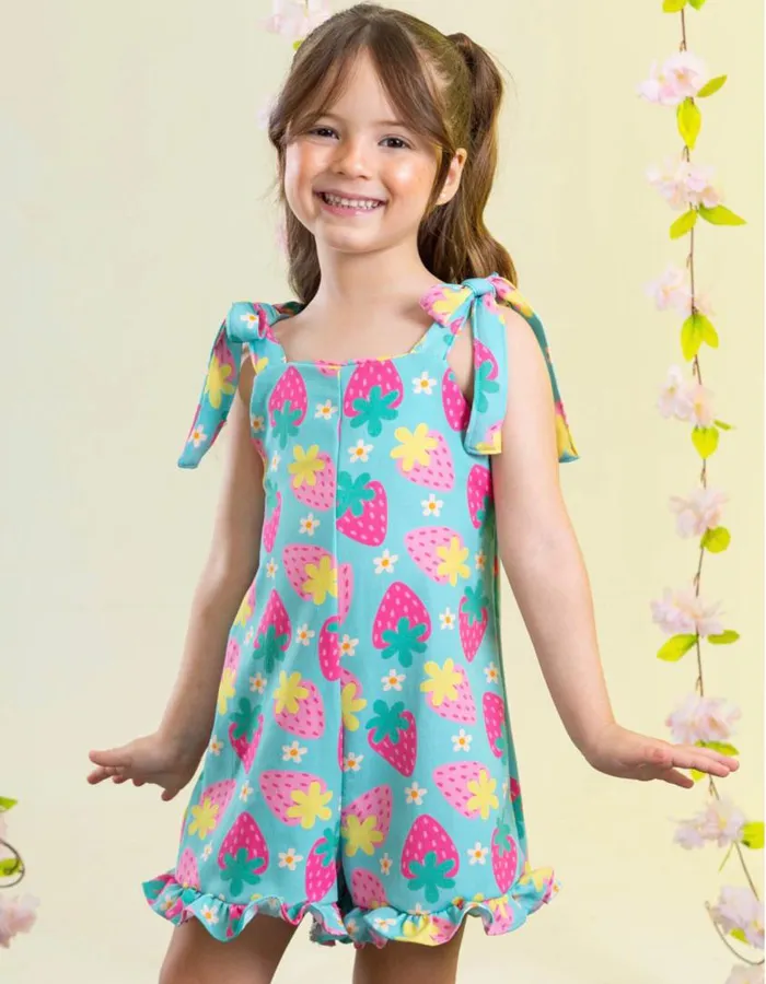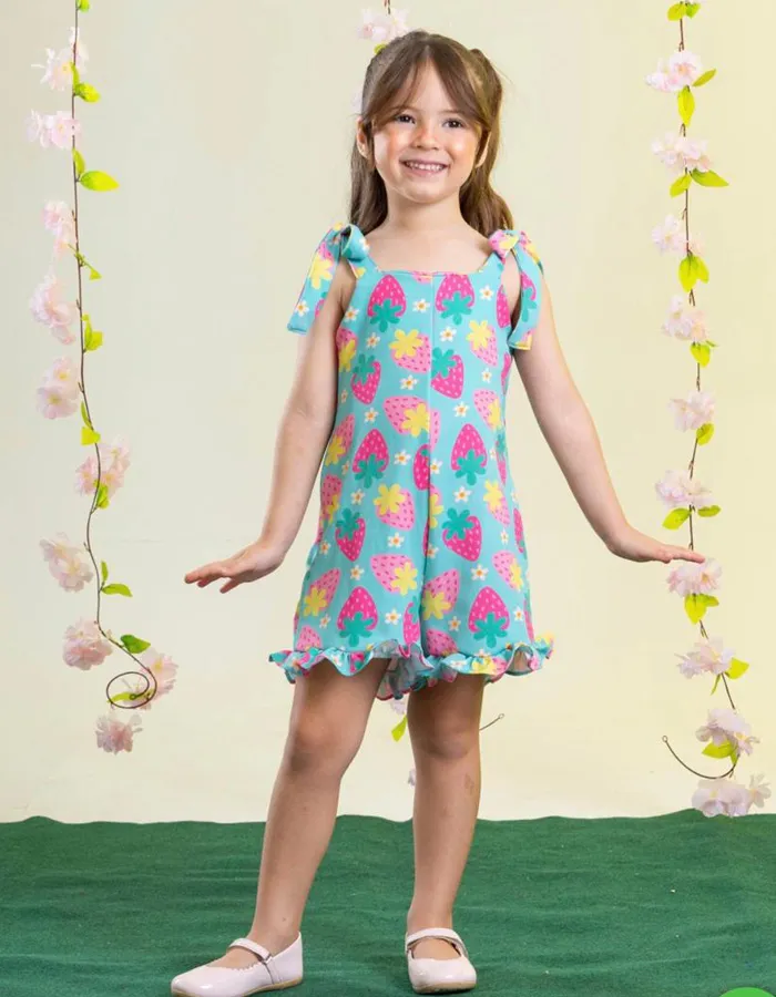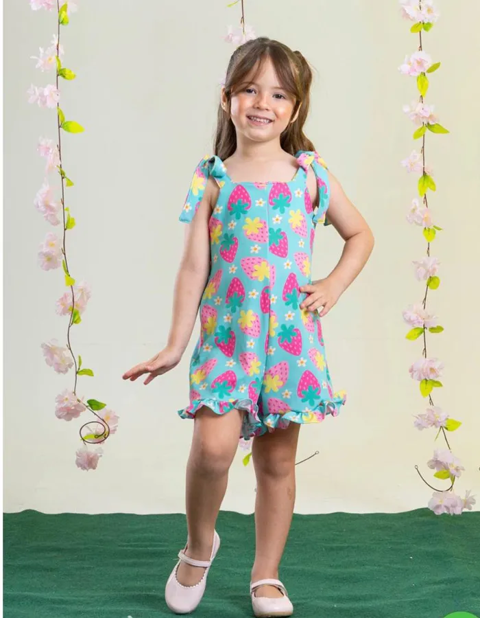 Deixe a sua pequena ainda mais estilosa e divertida com o Macaquinho Morangos! Este macaquinho trapézio encantador, com babadi na barra, é perfeito para meninas de 1, 2 e 4 anos, combinando conforto e um toque de alegria ao visual.