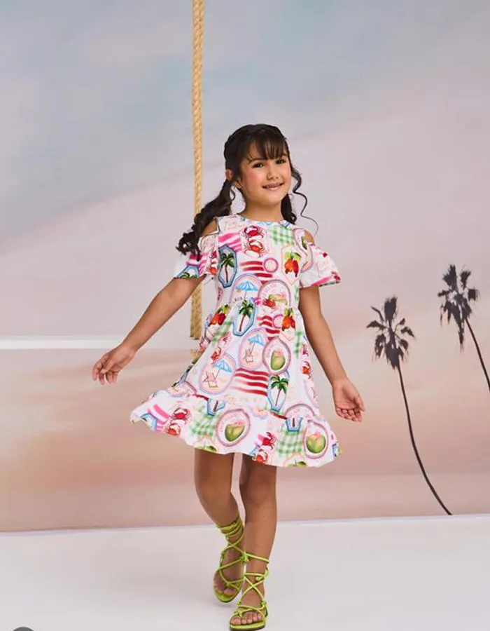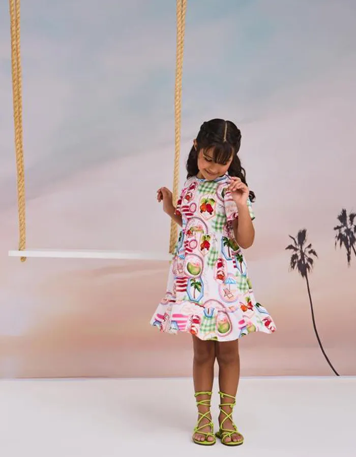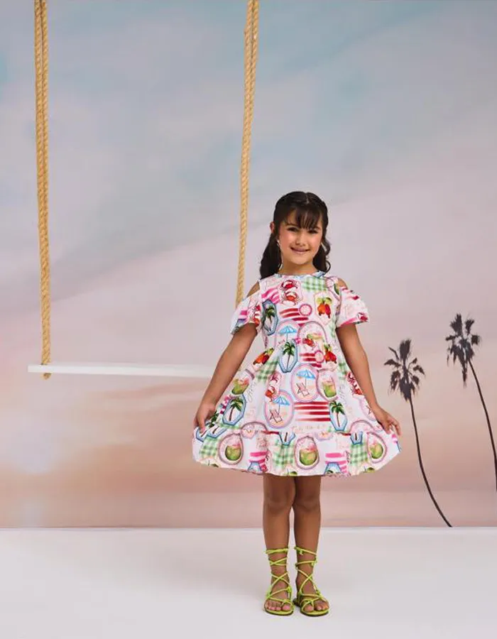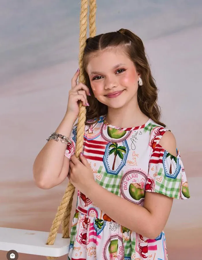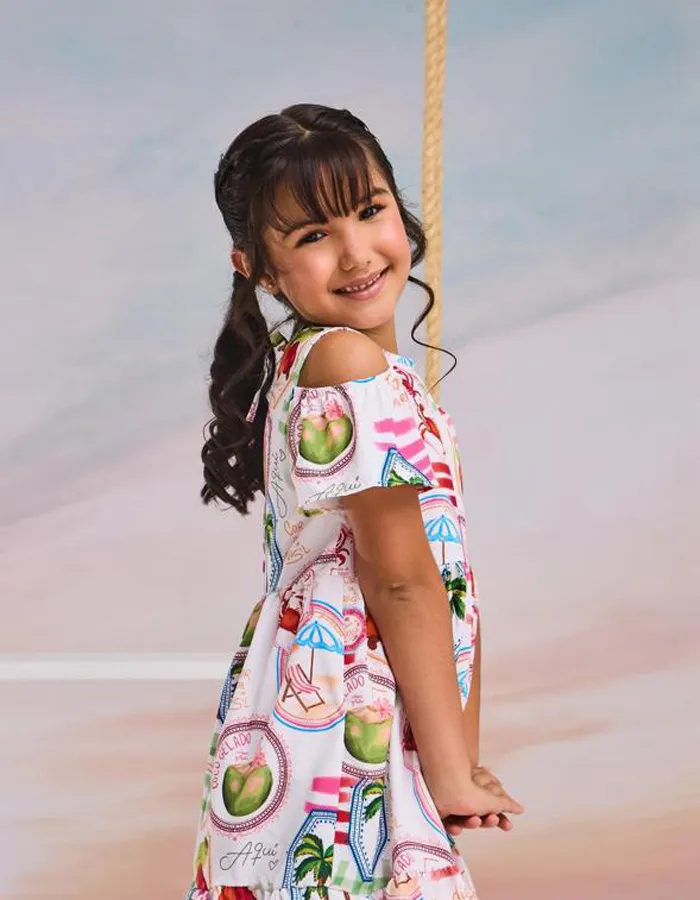 Encantador, leve e cheio de personalidade, o Vestido estampa tropical Água de Coco é a escolha perfeita para compor looks delicados e inesquecíveis. Com uma estampa tropical elegante e alegre, a peça transmite frescor, suavidade e um charme especial que valoriza ainda mais o visual das pequenas.